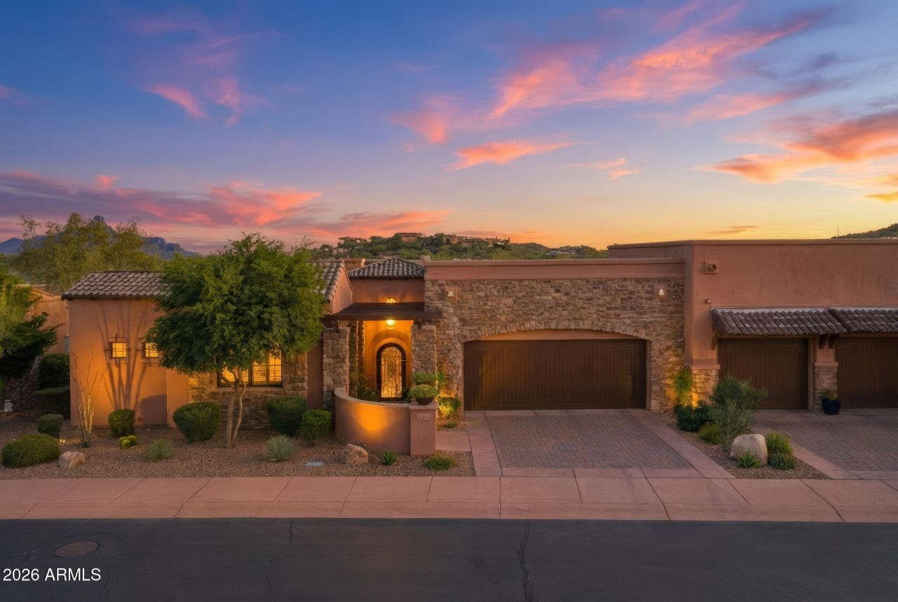 Discover unparalleled sophisticated elegance in the prestigious, private guard-gated golf community of Firerock Country Club--Premier enclave of luxury living. This impeccable Firerock Villa exudes timeless quality, showcasing masterful craftsmanship and exquisite attention to detail at every turn.The thoughtfully designed layout features three luxurious bedrooms, including a completely separate guest casita that provides ideal privacy for visitors or multigenerational living.Prepare to be captivated by the gourmet kitchen--a true chefs dream--boasting premium appliances including a Sub-Zero refrigerator, five-burner Wolf gas cooktop, full-size Sub-Zero wine refrigerator, and an expansive walk-in pantry. Stunning granite countertops flow into a two-level island with bar seating, seamlessly opening to the grand great room for effortless entertaining.The expansive great room is a showstopper: a dramatic floor-to-ceiling stone gas fireplace anchors the space, complemented by soaring high ceilings with elegant decorative wood inserts, luxurious travertine flooring, and an entire wall of floor-to-ceiling sliders that dissolve the boundary between indoors and out.Step onto the huge, resort-style patioyour private outdoor oasiscomplete with a built-in barbecue, soothing water feature, additional gas fireplace, and breathtaking mountain views that will leave you in awe.Recent upgrades ensure modern comfort and peace of mind: HVAC system , new roof, fresh exterior paint, custom grill for the fireplace, automatic sunshade and awning, tiled snack bar and oven hood, updated interior LED lighting throughout, new ceiling fans (interior and exterior), tiled outdoor fireplace, newer water heater with hot water circulator, updated water softener, new washer and dryer, custom glass in the front door, replaced block glass with a beautiful custom window behind the tub, and a whole-home central vacuum system.This is more than a homeits a refined lifestyle of luxury, privacy, and breathtaking desert beauty. Welcome to your extraordinary Firerock retreat.