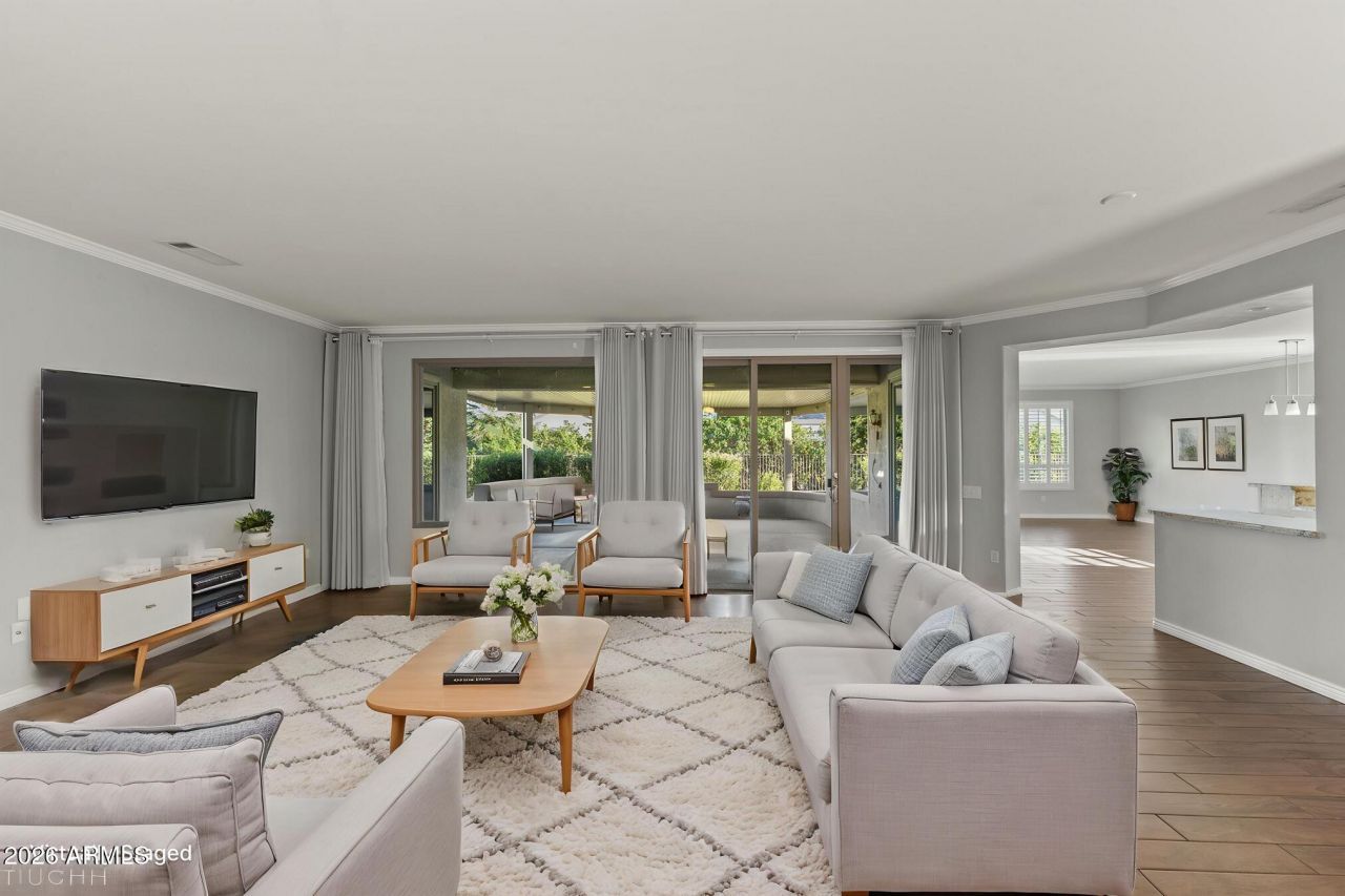 Welcome to The Grand! A private north/south-facing cul-de-sac lot, this Windrose II floorplan features significant system and interior upgrades. Improvements include a new roof, Renewal by Andersen windows, a Tesla solar system, which is owner owned, an upgraded HVAC system, and a new water heater. The home offers tile flooring, updated carpeting, crown moulding, upgraded baseboards, plantation shutters, and custom window treatments. The kitchen features granite countertops and upgraded appliances, while the primary bath includes a curb-less walk-in shower. Additional improvements include an upgraded primary closet system, exterior paint, a new washer and dryer, security cameras with Ring doorbell, plus a covered patio, refreshed landscaping, fencing, and an upgraded sprinkler system. A private north/south-facing cul-de-sac lot, this thoughtfully updated Windrose II floorplan offers a comfortable layout, along with important system improvements and quality interior upgrades.Significant recent improvements include a new roof, Renewal by Andersen replacement windows, a Tesla solar system owned by the seller, an upgraded HVAC system, and a new water heater, providing meaningful updates that support energy efficiency and long-term reliability.Inside, the home features porcelain tile flooring, updated carpeting, elaborate crown molding, and upgraded baseboards, creating a clean and well-finished interior. Plantation shutters and custom window treatments are installed throughout, and the primary closet has been upgraded with an organized closet system for improved storage.The kitchen has been enhanced with granite countertops and upgraded appliances, creating a functional space that flows seamlessly into the main living areas. The primary bathroom has been remodeled with a curbless walk-in shower, providing both modern design and ease of use.Additional improvements include a new washer and dryer, exterior paint, and a security system with cameras and a Ring doorbell. The home is also under termite containment service.Outdoor living features a covered rear patio, refreshed landscaping, backyard fencing, and an upgraded sprinkler system, creating a private setting to enjoy Arizonas climate.This Windrose II combines a desirable cul-de-sac location with substantial system upgrades and practical interior improvements, reflecting careful ownership and consistent maintenance.
