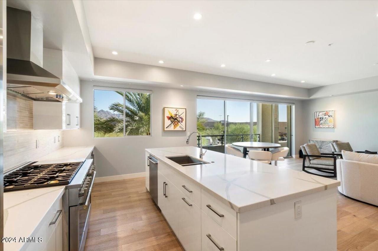 LOCATION LOCATION LOCATION now at an UNPARALLELED VALUE! Experience a level of sophistication and convenience rarely found in luxury urban living. Welcome to this exceptional, fully furnished residence at SOHO Scottsdale, where every detail has been curated for the most discerning buyer. Now offered at an extraordinary new price, this is a prime opportunity for immediate, elevated ownership. Spanning over 2,000 interior square feet, this residence feels expansive, thanks to its soaring ceilings and generous, intelligently designed living spaces. This highly desirable layout includes TWO private en-suite bedrooms, a flexible third room perfect for a private study or den, and a chic guest powder room. The kitchen is a masterpiece of form and function, optimized for both grand entertaining and daily efficiency. It features pristine Quartz countertops, sleek custom cabinetry, and a premium GE Monogram Statement appliance suite. Rare for urban condominiums, the residence extends your living space with two private patios.Connectivity and convenience are paramount. The home is fully outfitted with SMART HOME technology, allowing seamless control of entry, lighting, and climate from your smartphone. Your arrival is equally effortless, with two underground, gated parking spaces and a semi-private elevator delivering you directly to your door.