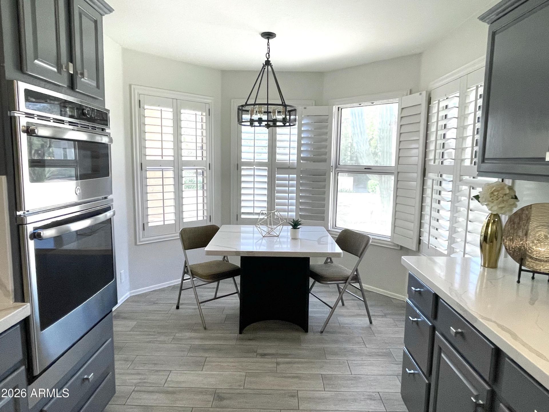 This Elegant + Spacious home has it ALL ! Enter into a Modern open floor plan, with High Vaulted Ceilings * The Gorgeous Kitchen boasts beautiful Quartz Countertops, Stainless Appliances, Downdraft cooktop, High-end refrigerator, Bosch Dishwasher + R/O system * Updated Tile Floors are throughout the home * All Windows have Custom SHUTTERS * Bedrooms are Separated * The Primary Bedroom Suite is Large, and its Bathroom has Double Sinks, a Remodeled Shower, Loads of Counter Space + Storage * Bedroom 2 has a Murphy-Wall-Bed for Guests, and also functions as a Large Office * The Guest Bath is remodeled, and has a Jetted Spa Tub ! Step Out Back + Soak up the Sun on your South Facing Covered Patio * Your Private Lot is home to Texas Yucca Plants, and your own majestic Saguaro Cactus ... your 3 foot high perimeter wall enables you to view the Desert Trees in the Natural common area. This GATED enclave of homes is just a short WALK, to the POOL, Rec-Center, Golf Course + Clubhouse ! Pickleball anyone?.. there are 16 courts within Westbrook Village ! 2 Golf Courses, Pools, Spas, Social Clubs of interest...and Lots of Sunshine ! Dont wait, come join in ! ( Only1 Resident needs to be Age 40 or older, and Visitors under the age of 18 can reside a maximum of 90 days, per each12 month period )