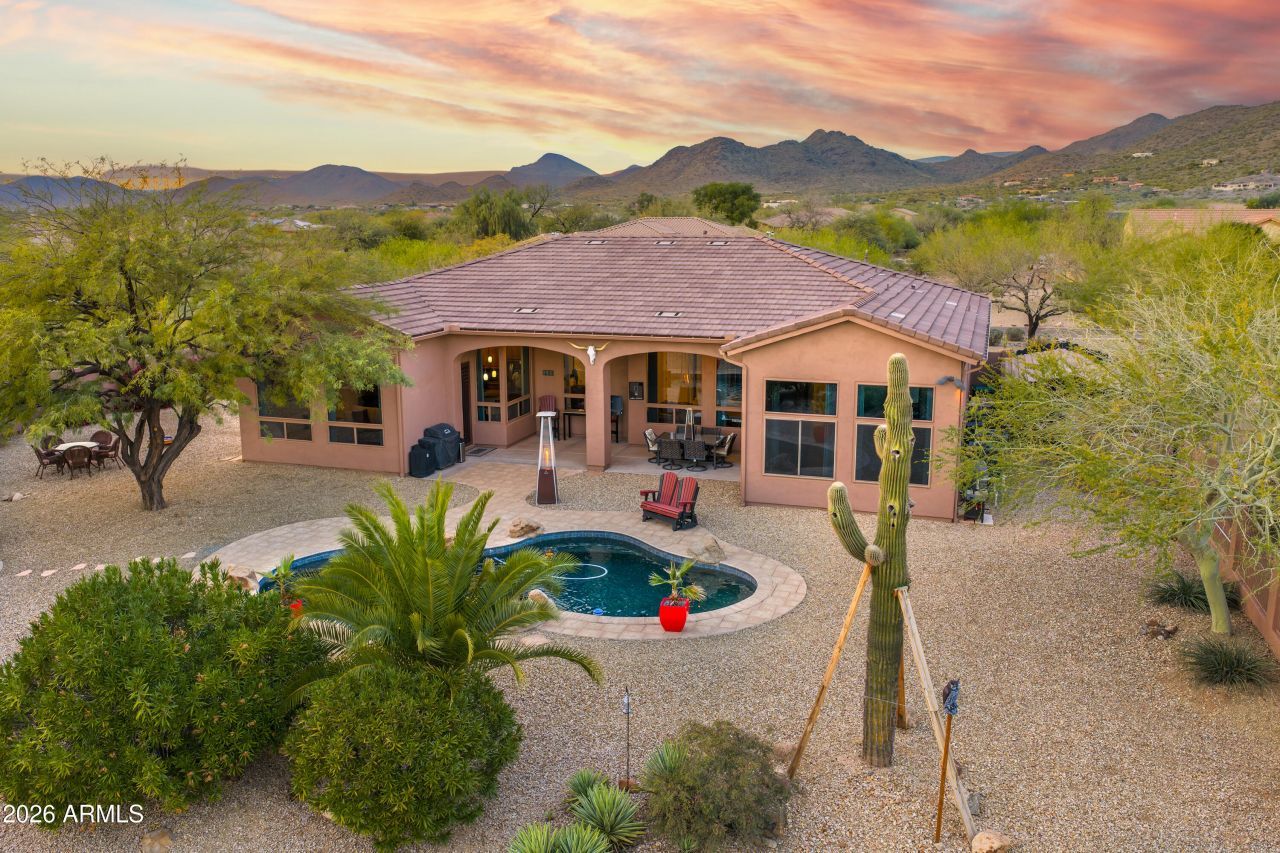 New roof, new HVAC systems, and new water heater deliver immediate peace of mind in this beautifully maintained, turnkey single-level estate set on 1.24 acres in Cave Creek. Backing to Arizona State Trust Land, the property offers exceptional privacy, protected desert views, and unobstructed Black Mountain sunrises. This 4 bed, 3 bath home features a split floor plan, three fully renovated baths, and an expansive primary suite with direct backyard access, walk-in closet, dual vanities, and an oversized walk-in shower. Outdoor living is elevated with a pebble-tec pool and waterfall, gas kiva fireplace, wood-burning firepit, covered patio, and mature citrus orchard. Oversized 3 car garage with extended height doors allows for lifts and up to 5 vehicles. The Ultimate Neighbor: Arizona State Trust Land. Privacy, Views, and Freedom in Cave Creek.Set on over an acre in the heart of Cave Creek, this exceptional single-story desert retreat offers a rare combination of protected privacy, breathtaking sunrise views, and effortless luxury. Backing to Arizona State Trust Land--arguably the best neighbor you can have--this property ensures uninterrupted desert beauty and unobstructed views of the west side of Black Mountain for years to come.Here, youll experience the perfect balance: close enough to town for dining, shopping, and golf, yet far enough away to enjoy the peace, quiet, and open space that define the Cave Creek lifestyle.Designed for Comfort, Privacy, and Natural LightThoughtfully designed with a split floor plan, this beautifully maintained residence offers both functionality and refined living.Interior Highlights 3 bedrooms, 3 bathrooms, plus dedicated office Abundant natural light and ideal north-south exposure Spacious primary suite with private backyard access Generous walk-in closet and dual vanities Fully renovated primary bath with oversized walk-in shower Secondary bedrooms with shared bath and private wing Open, inviting living spaces ideal for entertaining Luxury vinyl plank flooring throughout Updated laundry room with granite countertopsOutdoor Living That Defines the Desert LifestyleStep outside and discover a backyard designed for relaxation, entertaining, and connection to the beauty of the Sonoran Desert.Outdoor Features Expansive covered patio for year-round living Pebble-tec pool with tranquil waterfall Gas kiva fireplace plus separate wood-burning firepit Mature desert landscaping and custom lighting Fruit tree orchard creating a private retreat Unobstructed sunrise and mountain views Backing to Arizona State Trust Land for lasting privacyA Rare Opportunity for Automotive and Adventure EnthusiastsWhether you enjoy scenic day drives, weekend motorcycle rides, or collecting performance vehicles, this property offers a unique lifestyle advantage.Garage & Automotive Features Oversized 3-car garage with extended-height doors Upgraded side-mount openers Designed to accommodate two vehicle lifts Capacity to store up to five vehicles Lifts available under separate bill of sale Easy access to iconic Arizona driving and riding routesExtensive Recent Upgrades for Peace of MindThis home has been thoughtfully updated to provide modern comfort and long-term value. Full roof replacement Two new Trane HVAC systems Tankless water heater Water softening system Three FULLY remodeled bathrooms Interior and exterior paint Epoxy garage flooring Landscape lighting and RV gate Updated garage technologyLocation Without CompromiseEnjoy the best of Cave Creek li