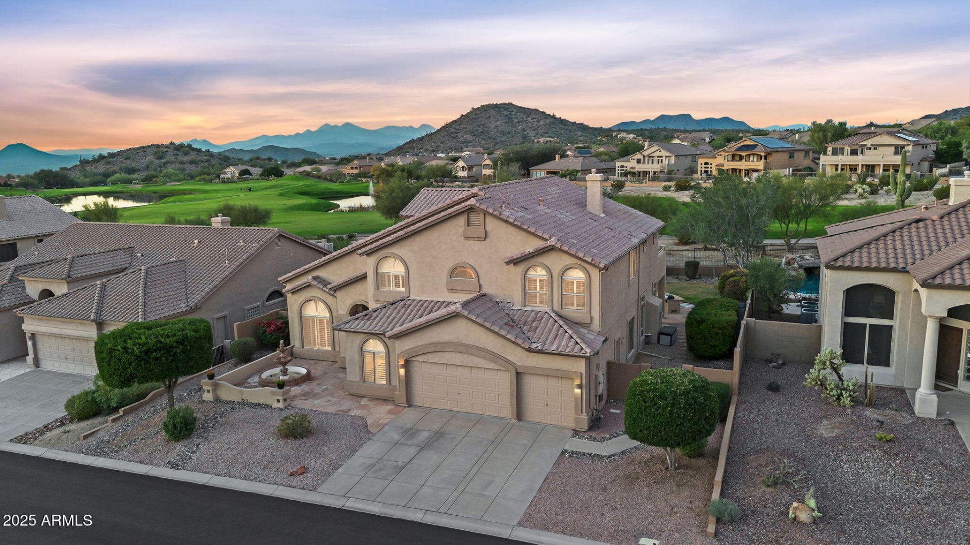 VIEWS! VIEWS! VIEWS! This stunning home sits on a premium north/south golf course lot on the 18th hole in the prestigious gated golf community of Las Sendas. From the moment you arrive, youll love the inviting front courtyard, and eye-catching fountain.Step inside to a grand entry with soaring vaulted ceilings that lead into an expansive formal living/bonus room and elegant dining area. The remodeled chefs kitchen features a waterfall quartz island, stainless steel appliances, and a cozy breakfast nook surrounded by bay windows, perfectly positioned to overlook the gorgeous backyard. The kitchen opens to a spacious family room with a gas fireplace, creating the ideal space for gatherings and entertaining.Downstairs offers a versatile bedroom, perfect for a mother-in-law/guest suite, home office, or bonus room. Upstairs, youll find a huge primary suite with its own sitting room/den (or optional 5th bedroom) and 3 additional generously sized bedrooms. The primary bathroom boasts dual sinks, a soaking tub, and a separate shower along with dual closets. The extended upper balcony offers breathtaking Arizona sunset views, majestic mountains, sparkling city lights, and the lush golf course with lake and fairway views. The resort-style backyard is your private oasis featuring a sparkling pool, grass, a beehive fireplace and built in BBQ, ample space to entertain, and peaceful views of the golf course and lake. 3 car garage PLUS a large bonus room with its own A/C, ideal for storage, a gym, flex room. This home offers luxury, flexibility, and some of the best views Las Sendas has to offer. Enjoy resort style living in the award-winning community of Las Sendas next to the Tonto National Forest and with some of the best hiking and biking trails, Championship Golf Course, 2 Heated Pools/Spas, Tennis, Pickle Ball, Sports Courts, Bocce Ball, Playgrounds, Splash Park, Clubhouse, Spa and Fitness Center and more. Great location Just minutes to the 202 Freeway, 20 minutes to Sky Harbor and Gateway Airport, Scottsdale, 15 minutes to Saguaro Lake and the Salt River.